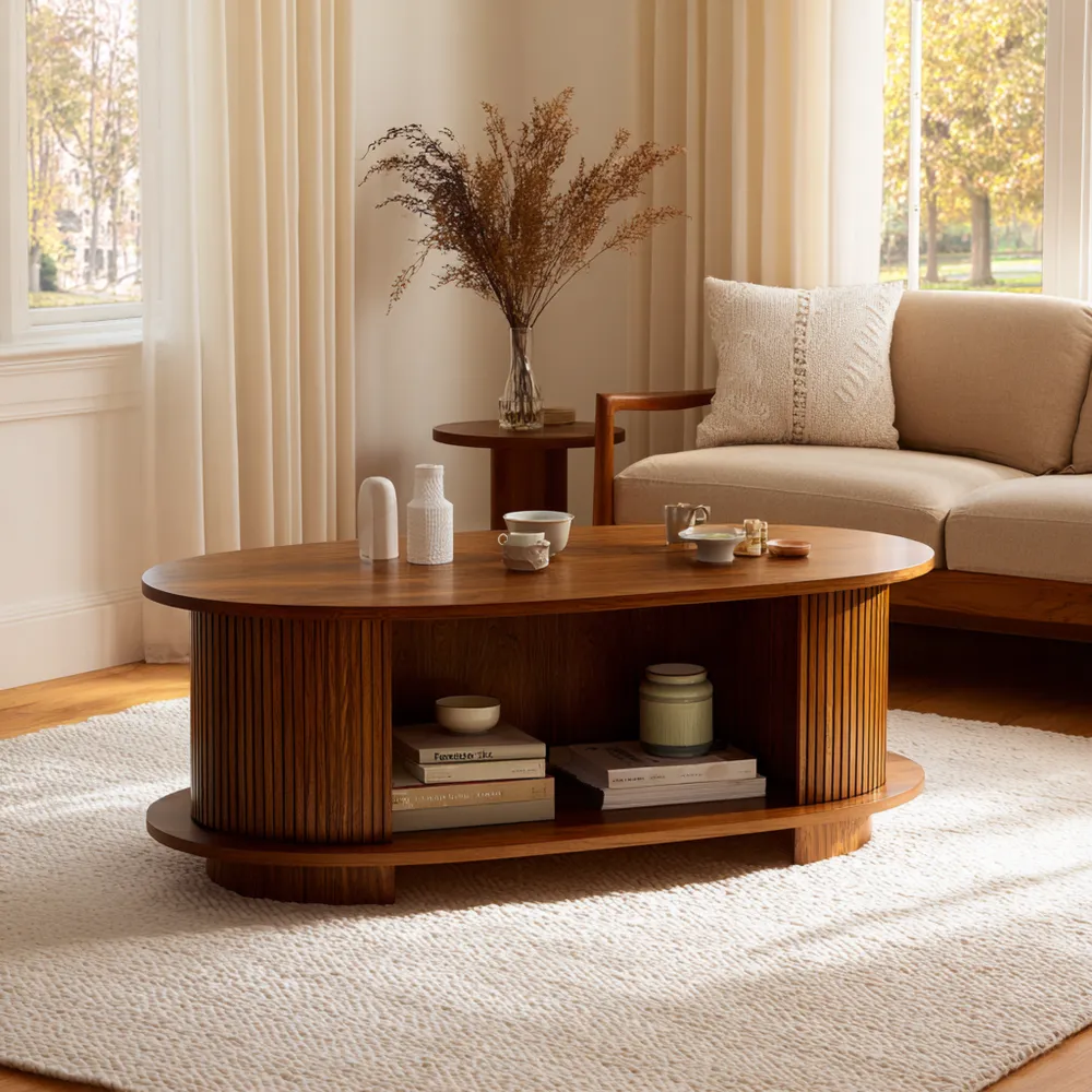 Tavolino da caffè in legno ovale 120x60x45 cm - Design moderno