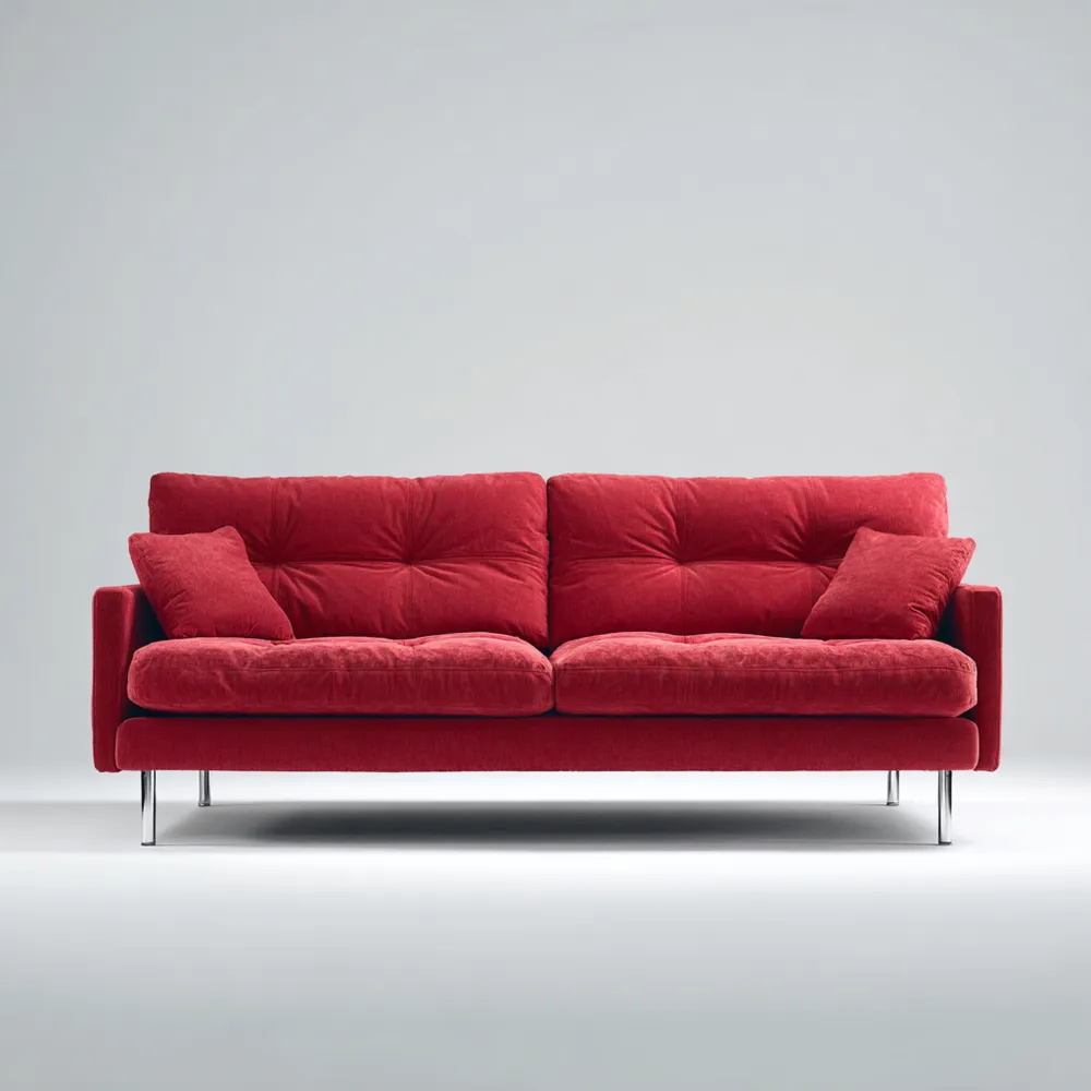 Materiale e lavorazioneRealizzato in morbido velluto di colore Rosso, il divano vanta di una lavorazione artigianale che garantisce durata e qualità. Le gambe in metallo cromato aggiungono un tocco di eleganza.